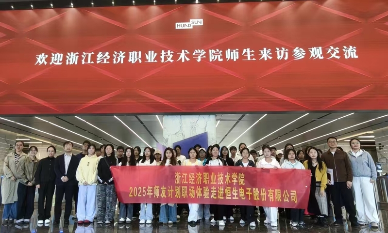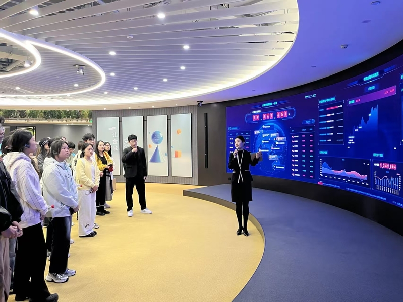 在恒生电子校企区域总监徐鹏翔的陪同下,师生们参观了企业展厅,通过技术演示与产品互动,近距离感受金融科技领域的前沿成果,深化了对数智行业实际应用场景的理解。