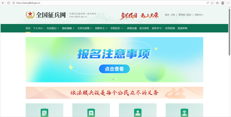(1)进入网站:全民征兵网,登录https://www.gfbzb.gov.cn/或扫描下图二维码进入全国征兵网。