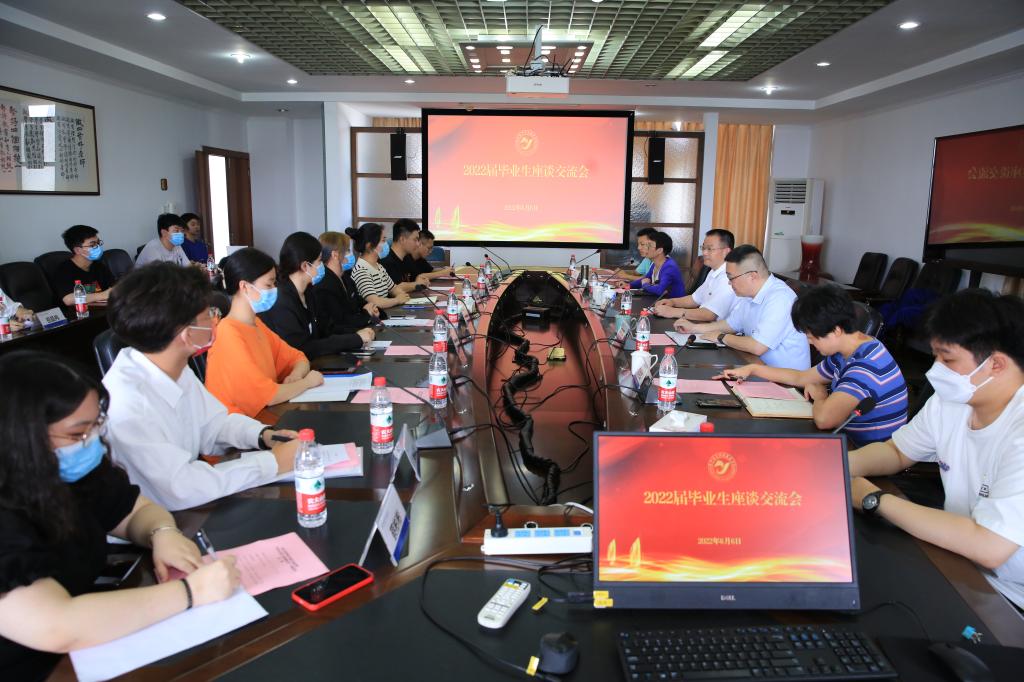 6月6日下午,学校召开2022届毕业生就业座谈交流会。学校党委书记骆光林与来自各二级学院的毕业生代表共叙师生情谊,畅谈美好未来。学校党委委员、副校长姜宇国出席座谈会。座谈会由党委委员、组织部长、宣传统战部长陈专主持。招生就业处、学工部等部门负责人参加座谈。
