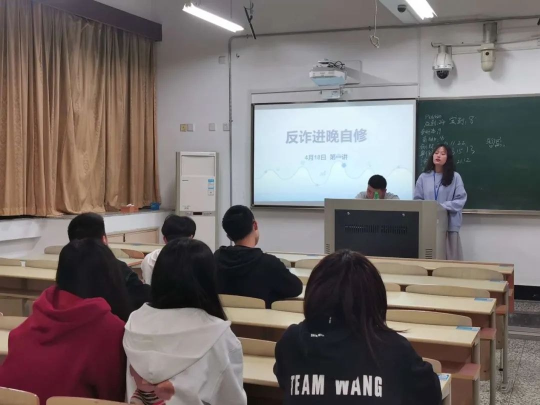 大学生被电信网络诈骗的事件屡屡发生,诈骗事件给学生造成了巨大的财产损失和精神创伤,严重威胁了校园安全与稳定。习近平总书记在4月9日就对打击电信网络诈骗犯罪工作作出重要指示。我校保卫处也就加强电信网络诈骗工作风险防范作出重要通知。为了进一步巩固和提升平安校园工作,切实提高学生对防范电信网络诈骗参与度与知晓率,我院发动学生会干部积极响应校保卫处的通知要求,开展了反诈骗宣讲进晚自修的活动。