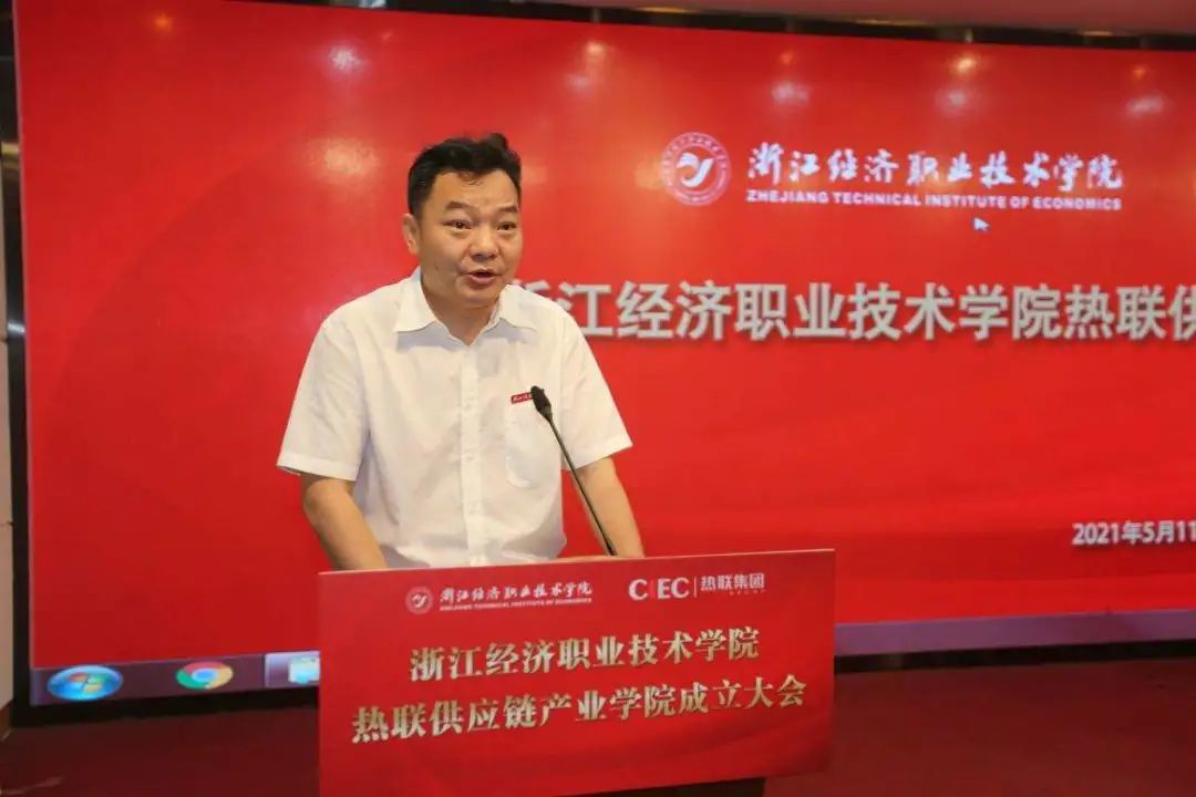 校党委副书记,校长邵庆祥代表我校致辞,他指出:增强职业教育适应性支撑在产业,培养高素质人才依托在企业。我校基于物流供应链产业来谋划发展专业布局,依托产教融合、校企合作、工学结合办学模式,是我校长期坚持办好职业教育、提升职业教育服务经济社会的经验规律。杭州热联集团股份有限公司是隶属杭州市实业投资集团的国有控股公司。“热联”品牌享有优异的商业信誉和企业形象。未来,我们还将在人才培养等方面展开深度合作,实现产教深度融合,从而激发新动能、推动新发展,打造校企合作新模式。同时邵校长还提出三点希望:一是希望校企双方将优势互补和机制创新相结合;二是学院应大力拓展与行业、企业的联系,提升人才培养质量;三是希望产业学院同学们把握机会,不断精进自身,找到理想的工作岗位。
