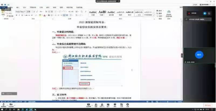 近日,为了做好毕业综合实践环节的精准指导和就业帮扶,避免人员聚集,提高工作效率,物流与供应链管理学院在线上分5个场次,按专业召开了2022届毕业综合实践动员暨安全教育会议,分院领导班子、专业主管、教学秘书、辅导员、班主任等分别参与到各场次宣讲。
