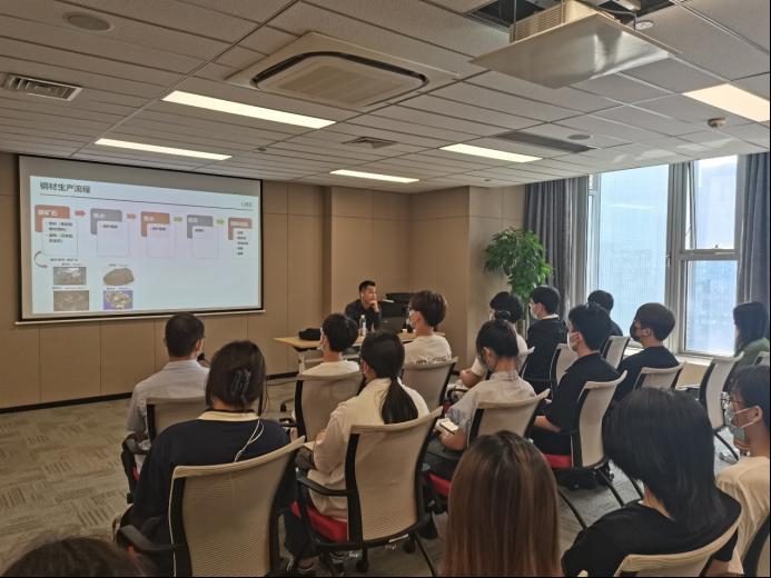 在《钢材产品知识》课上,夏伟忠从钢材生产流程、钢材工艺、钢材产品及用途三方面展开讲解,并选取生活场景中常见的钢材产品,贯通其上下游,帮助同学们初步建立起钢铁产业链的概念,其深入浅出的授课形式受到同学们的一致好评。
