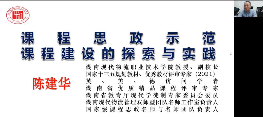 湖南现代物流职业技术学院副校长陈建华教授给大家深度讲解课程思范示范课程建设的探索与实践,分别从课程思政概述、课程思政课程建设模式、课程思政建设反思等方面展开详细的阐述。
