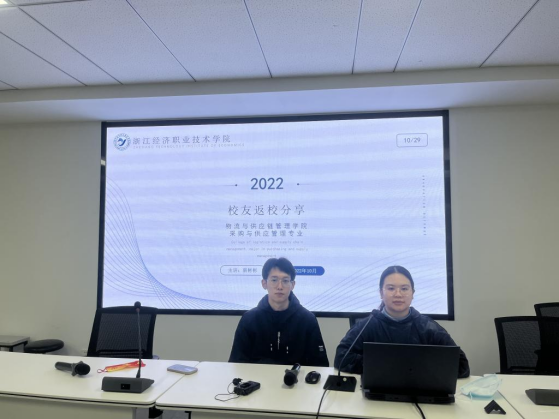 10月29日,正值校友“云返校”之际,物流与供应链管理学院开展了校友分享会活动。本次分享会邀请了2021届校友曾厚文和2022届校友蔡彬彬,参加此次活动的有学院学生干部和入党积极分子等40多位同学。分享会主要从学业生活、学生干部成长、创新创业、升学就业等几个方面展开。通过两位校友的精彩分享,同学们收获满满,对自己在学校期间学习、工作等方面有了更清晰的认识和规划。