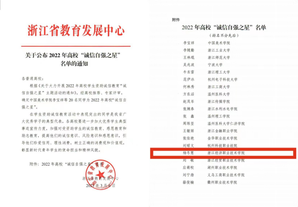 在浙江省教育发展中心2022年高校“诚信自强之星”活动中