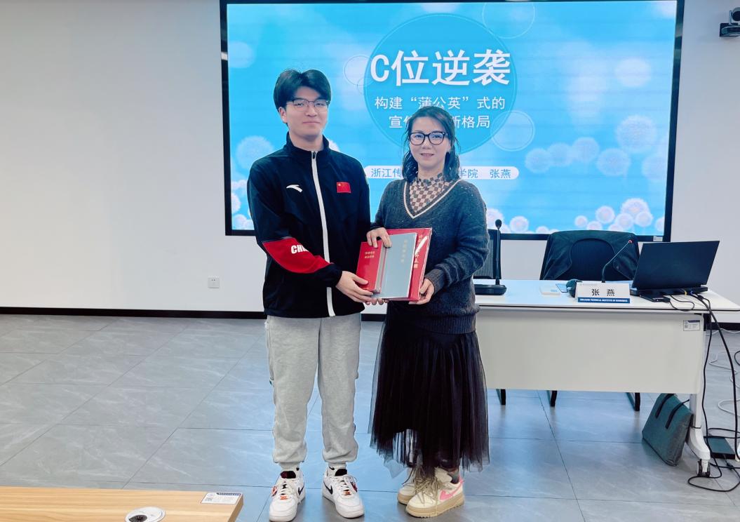 融媒体学生负责人周豪泽向张老师赠送了“风雅经院”文化创意作品,表达了对张老师的敬意,感谢此次专程而来的授课,带领物流学子在知识的海洋中畅游,使大家“干货”满满!