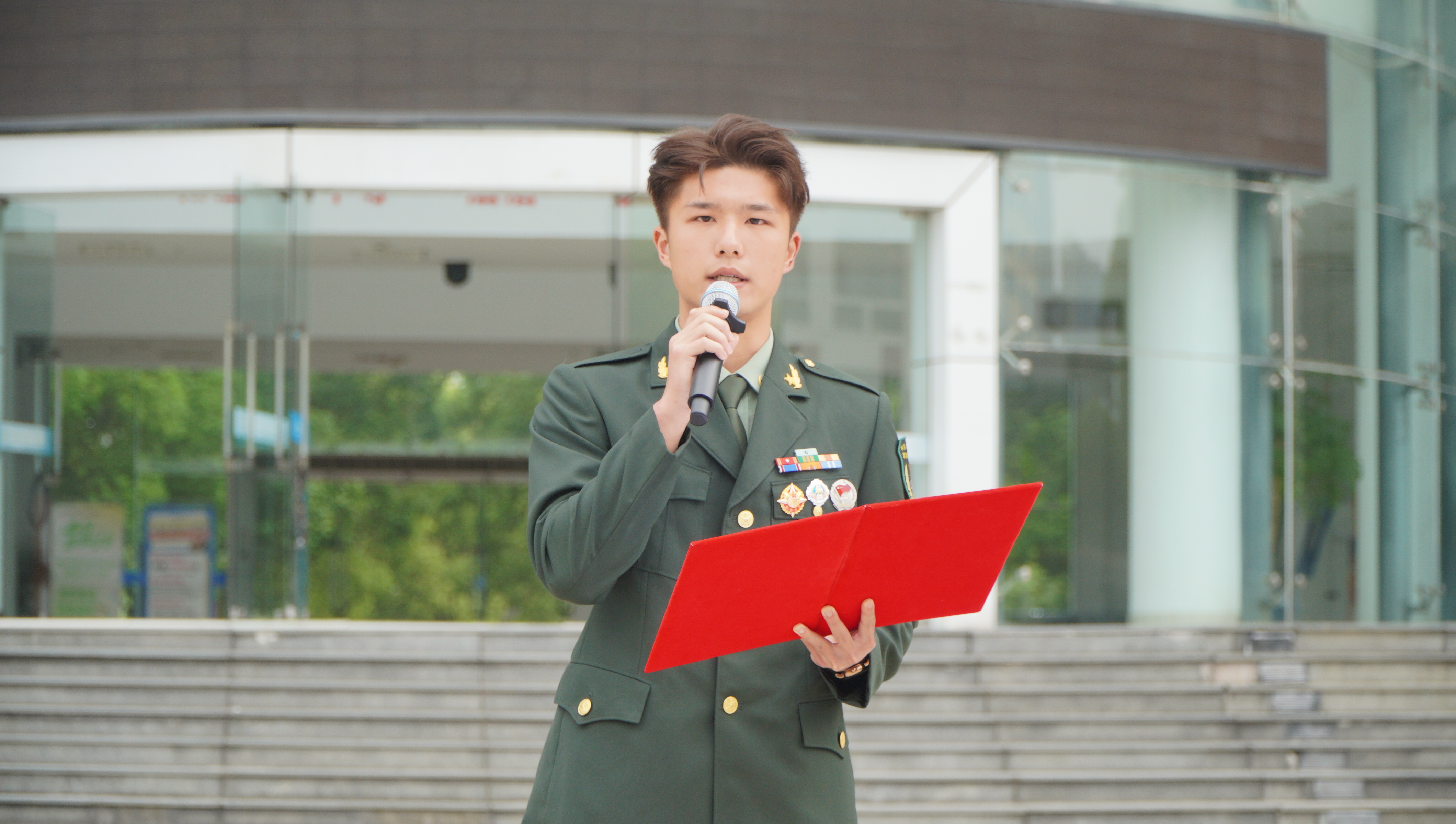 随后,三位24级退伍大学生作国旗下的讲话,P307224空乘班姚天野以航天城驻训经历为引,向同学们展现了航天人的极致追求:"初次执行某型号卫星燃料加注时,他紧盯流量计上0.01毫升的误差浑身紧绷,老兵那句‘这不是燃料,是国家的战略底气’令他终身铭记。当有人质疑小数点后三位的必要性,发射塔下‘误差归零即忠诚’的标语就是最有力的回答。"他号召青年学子:国家安全观就镌刻在每次精准操作中,从拧紧每颗螺丝做起,用实际行动筑牢“用万无一失守护万里苍穹”的钢铁防线。