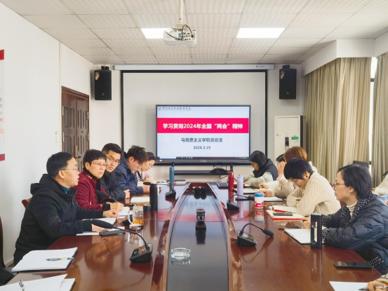 3月19日,马克思主义学院党总支召开全体教师大会,学习贯彻2024年全国“两会”精神,副院长寇翔教授主持会议。会议重点传达了两会期间习近平总书记重要讲话精神,梳理了习总书记就发展新质生产力的重要论述,对深入贯彻落实两会精神提出了明确要求。