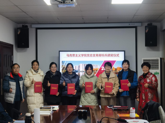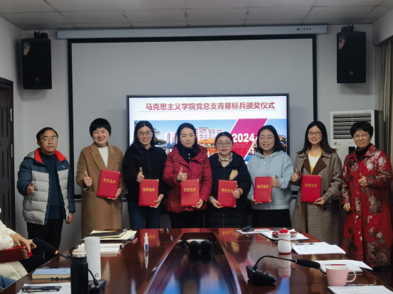 本次表彰的是2023年度马克思主义学院党总支“青雁标兵”,第一党支部和第二党支部分别选出六名优秀的党员同志,党总支书记、院长梁丽华、副院长寇翔为“青雁标兵”们颁发了荣誉证书,现场掌声连连。