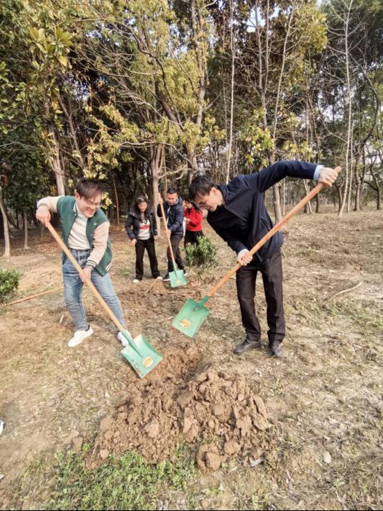 随后,队员们在负责人的带领下来到了植树点,共同为祖国生态文明建设增绿添彩。一来到植树点,大家纷纷拿起铁锹等植树工具,刨土、栽苗、浇水……认真体验种植树苗培育生命的植绿过程。暖阳之下,一棵棵新植的树苗稳稳扎根、昂然挺立,展现着蓬勃生机。“合抱之木,生于毫末”,植树活动不仅在大地上播种下一片绿色,也在大家心中植下一份希望和美好。