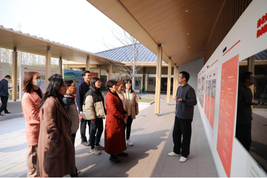 在主题馆内,讲解人员从“一核引领”、“智慧赋能”、“时尚运营”三方面向运河营地团队详细介绍了“田立方·临平未来农场”共富工坊项目的基本信息。田立方是集“农业+科创+文旅”于一体的“田园综合体”,大力发展都市休闲农业、数字农业、未来农业,积极融入时尚、数字、休闲等元素,以空间蝶变、活力再生为缩影,展现临平区高质量发展、城乡有机更新与风貌、公共服务优享、城乡均衡富民、区域治理水平等各方面的提升。同时,在相关负责人带领下参观了未来农业探索区核心区块的建设现场,并进一步了解了农业科创中心、雾耕植物工厂、太空农业中心等与科创相融合的“未来”特色农业。