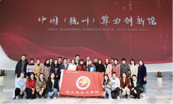 走进算力小镇创新馆,三折幕数字沙盘空间映入眼帘,极具科技感地展示了整个算力小镇。算力小镇是全国首个以“算力”命名、长三角唯一以“算力”为产业导向的特色小镇。在工作人员的带领下,宣讲队员们怀着一颗好奇与求知的心,认真聆听工作人员耐心而专业的讲解,仔细观看展厅里的动画、视频,了解了从农耕时代刀耕火种到现在人工智能、大数据、5G等技术的崛起,人类社会的算力的历史演变和算力工具的迭变。