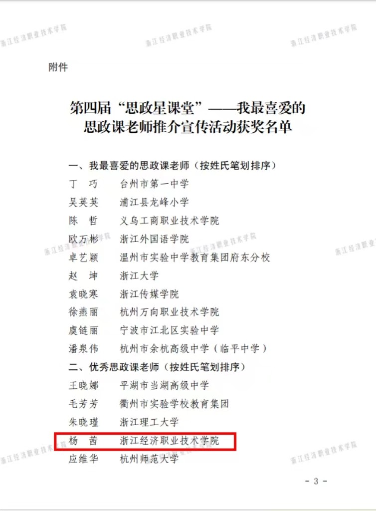 浙江省第四届“思政星课堂”——我最喜爱的思政课教师