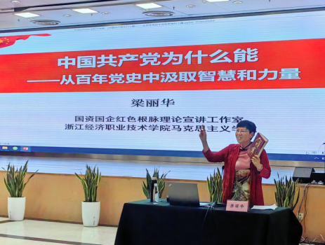 为深入学习宣传习近平新时代中国特色社会主义思想,贯彻落实《党史学习教育工作条例》,传承中国共产党红色管理精神财富,坚定新进员工的理想信念,2024年7月5日,国资国企红色根脉理论宣讲名师工作室负责人、华体汇app全站版党总支书记、院长梁丽华应邀走进杭报集团,作《中国共产党为什么能——从百年史中汲取智慧和力量》主题报告。