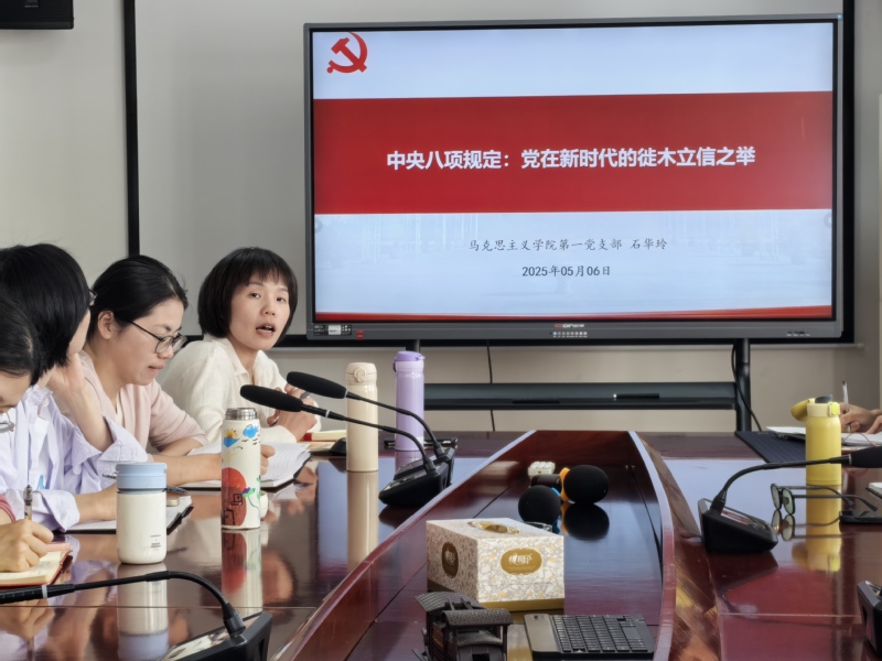2025年5月6日,马克思主义学院党总支开展了支部书记讲“深入贯彻中央八项规定精神”专题党课暨第34期青雁学堂,深入推进全体党员的思想建设与作风建设。此次活动中,马克思主义学院副院长、教师第二支部书记寇翔以及教师第一支部书记石华玲,分别带来了一堂生动且深刻的党课。