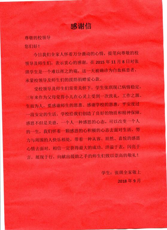 一封来自校友的感谢信