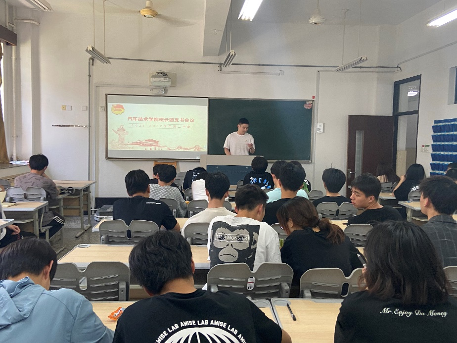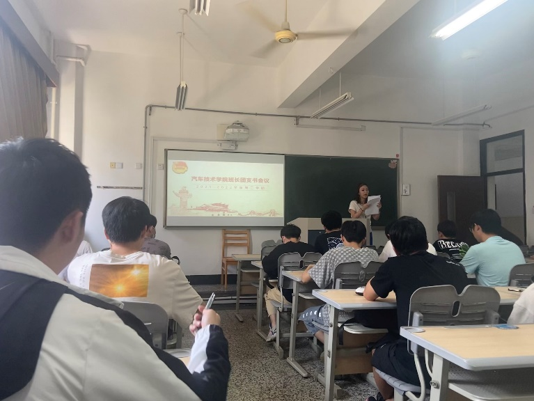 为加强对学生的管理和了解,宣传校园安全知识,帮助同学了解的个人生活规范的重要性,2022年4月12日中午在黄雨楼楼2206召开汽车技术学院班长团支书例会。