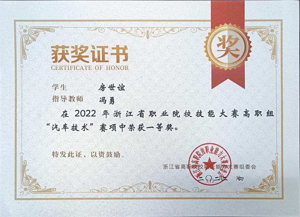 2022年获浙江省职业院校技能大赛一等奖
