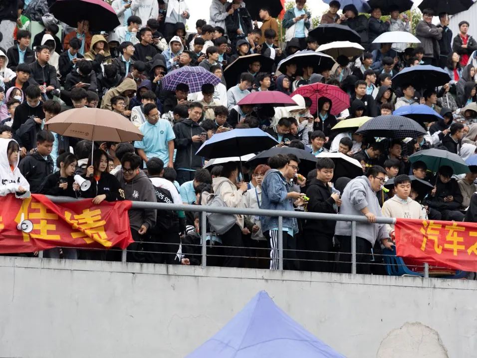 淅淅沥沥的小雨,抵挡不住同学们的热情。观众在主席台上呐喊欢呼,工作人员尽职尽责,宣传部的同学们四处奔走,记录着运动员们的精彩瞬间。