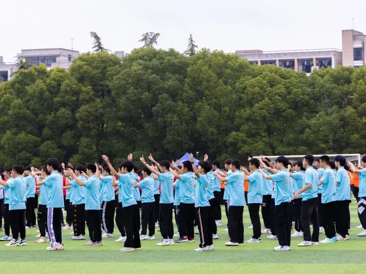 在开幕式中,伴随着亚运会主题曲《等你来》,同学们献上朝气蓬勃的舞蹈
