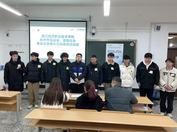 2023年2月23日晚,汽车技术学院在黄泽楼2408教室组织杭州2023亚运会、亚残运会赛会的志愿者补录面试。王贝贝,沈沁文,田雨卉老师担任本次面试的面试官。