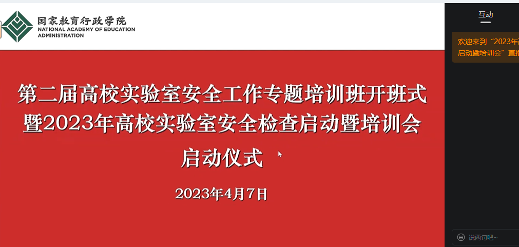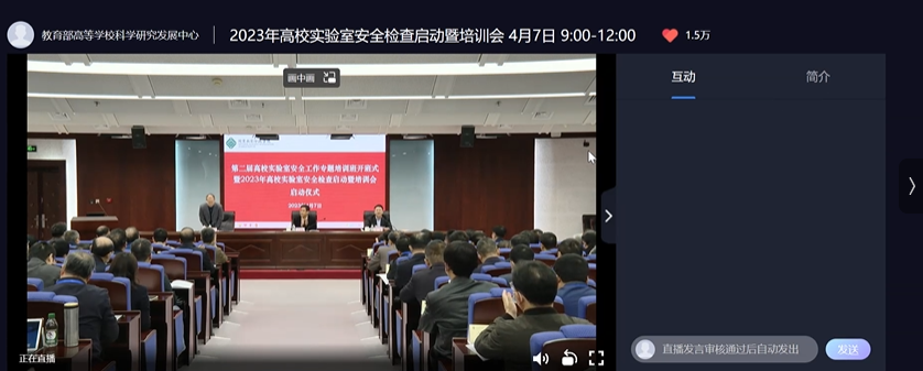 为了确保高校实验室安全运行,保障广大师生人身安全和校园稳定,教育部科技与信息化司和高教司于4月7日9:00-12:00以线上线下相结合的方式组织“2023年高校实验室安全检查启动暨培训会”,汽车实训基地全体老师在钉钉上收看学习,会议对2023年实验室安全检查工作进行部署,邀请专家对《高等学校实验室安全规范》《高等学校实验室安全检查项目表(2023年)》内容以及本年度检查重点进行详细解读,并就高校实验室安全基础理论、管理实践等内容进行报告交流。