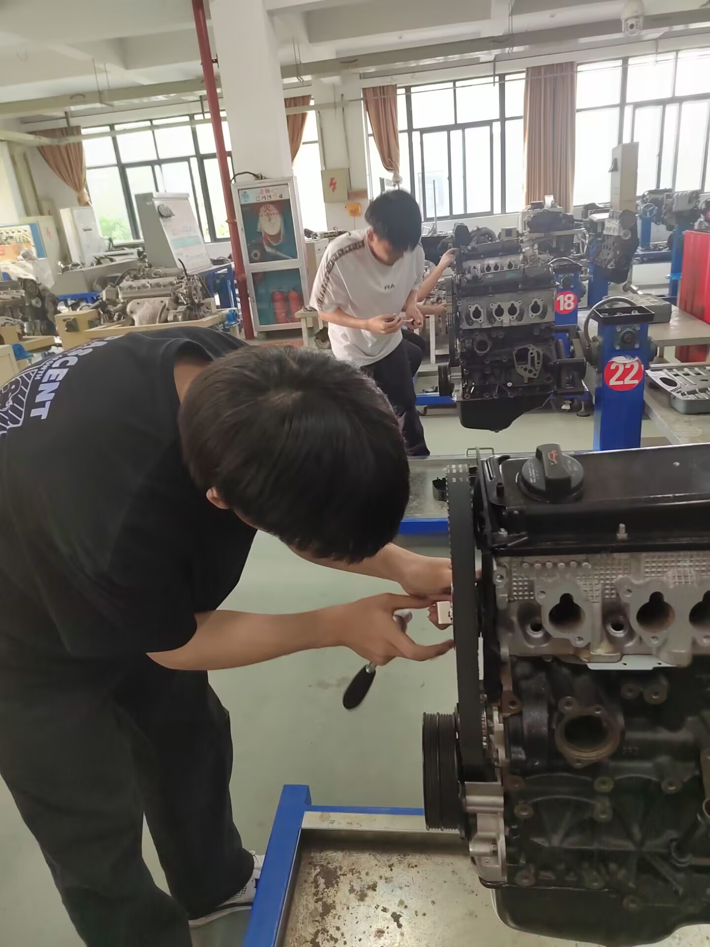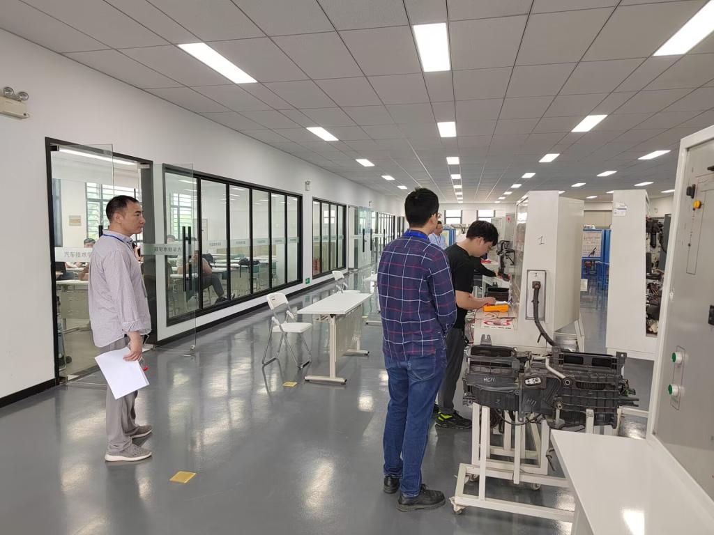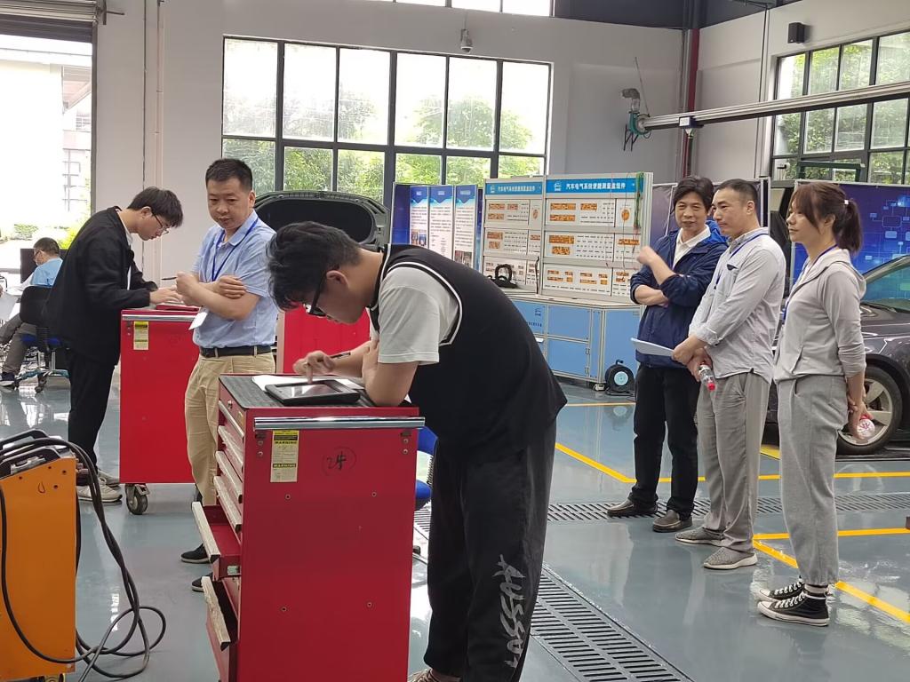 此次职业技能鉴定分为理论考试和实操两部分。考场组织有序,学生应考认真。实操考试现场井然有序,学生先在备考区等候,按准考证号顺序,轮到的同学先报到,填写基本信息,然后依次参加操作考试。本次中级工实操包含万向节及更换护套、检修起动机控制线路、检查调整发动机传动皮带和拆装检测气门组件等四个项目;高级工包含空调制冷系统故障诊断排除、发动机怠速不稳诊断排除、制动系统电子控制部分故障诊断排除等三个项目。同学们全神贯注,认真完成了各项实操,展现了扎实的专业技能和良好的职业素养。各位鉴定老师也秉持严谨求实的态度,进行客观评分,发扬连续作战的精神,从早8:30到晚19:30连续11小时高强度技能鉴定工作。