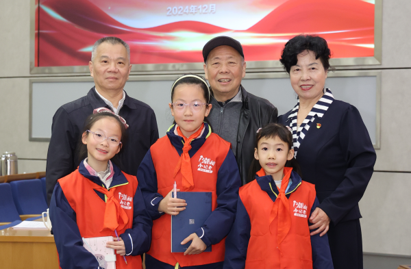 会议现场,“关心下一代·潮闻小记者”采访宋玲华、张建人、杨一青等“五老”骨干代表。