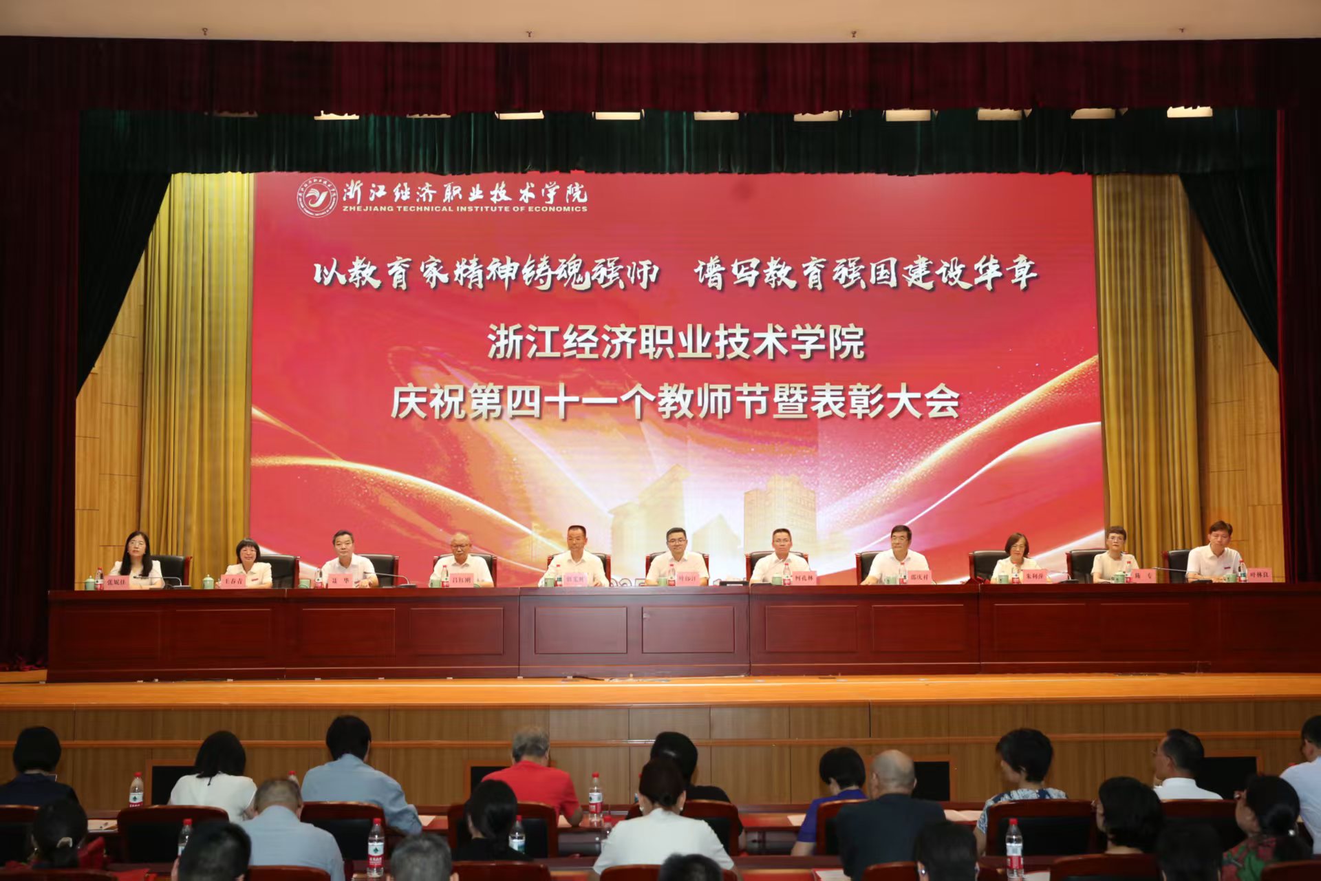 9月12日下午,学校隆重举行庆祝第41个教师节暨表彰大会。学校党委书记叶伟江,校长、党委副书记柯孔林,老领导骆光林、邵庆祥,党委领导班子成员,中层领导人员,退出中层领导岗位人员,受表彰教职工代表,退休老教师,新入职教师以及师生代表等现场出席大会,其他教职工和学生通过线上方式同步观看直播。