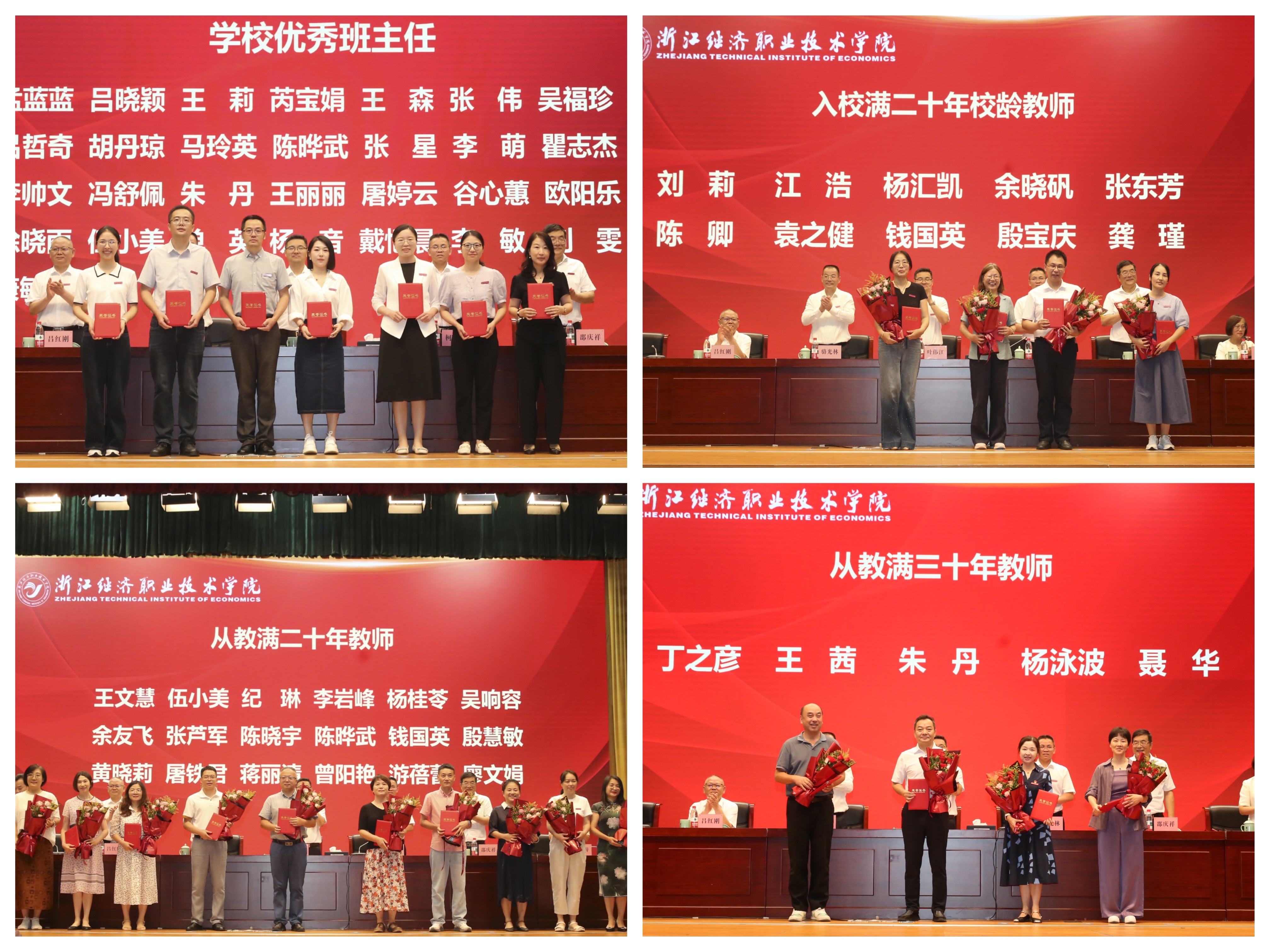 大会对先进集体、先进个人、各类大赛获奖者,以及入校、从教三十年、二十年校龄教龄教职工进行了表彰。