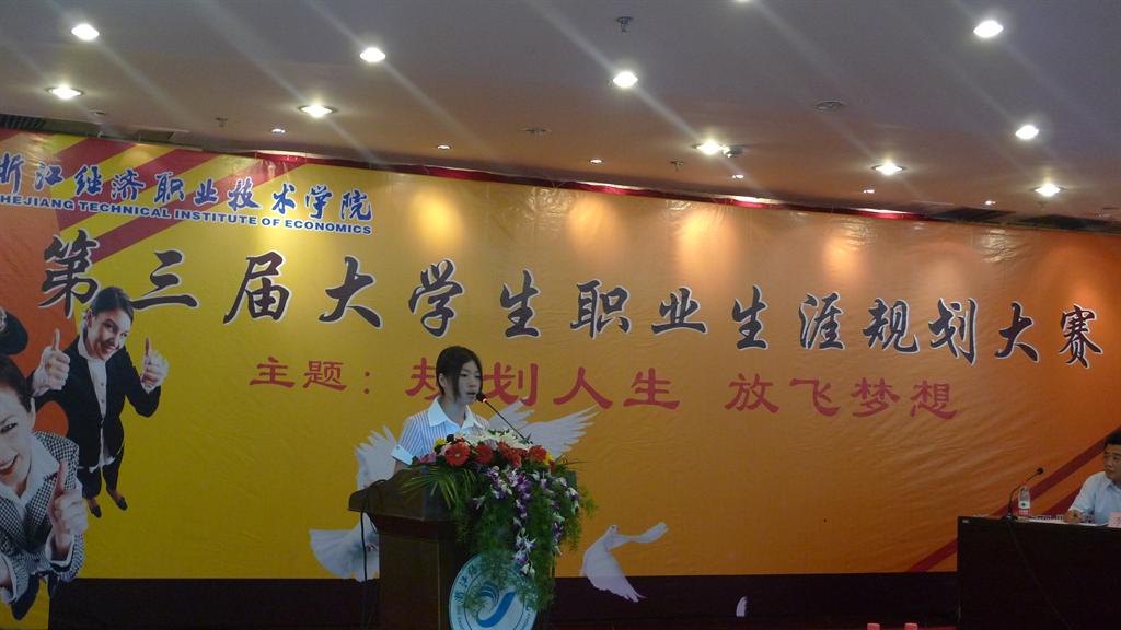 我们商贸流通学院推选出了两位同学参加此次比赛,她们分别是国贸二班的陈超群和马丽亚同学,在比赛中,她们用简洁的幻灯片和精彩的演讲,尽情地展现了自己的职业生涯规划。她们演讲的内容给了同学们很大的启示和启发,赢得了热烈的掌声,最后她们都获得了此次比赛优胜奖.