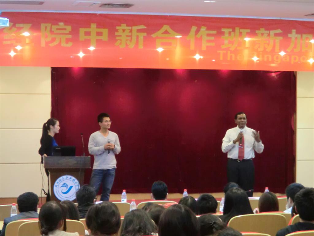 金秋硕果,可谓收获颇多。2011年10月16日晚上18:30,我校中新合作班新加坡体验汇报大赛在行政楼三楼报告厅隆重举行。本次汇报大赛的10组选手在今年暑假皆作为交换生与新加坡MDIS管理发展学院进行交流。