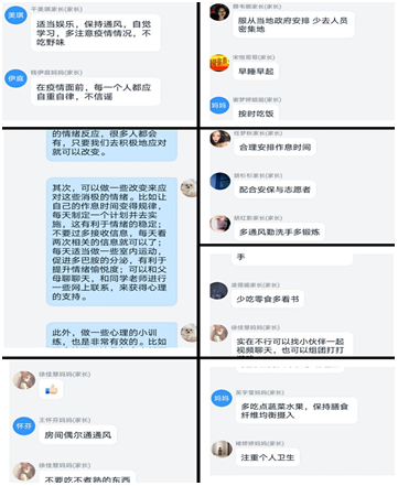 为缓解学生在抗疫期间的心理问题、做好人文关怀,消除学生居家隔离的恐慌和烦躁,增强学生战胜疫情的信心,分院40个班级在线上开展了一次以“共筑“心”防,携手抗疫”为主题的特色心理班会。构建分院领导-辅导员-班主任三级心理防御网络,持续地将各项心理健康普及知识及缓解情绪方式通过公众号文章的方式传达至每个班级,让学生在遇到困难的时候找到自我调节的方法手段,使学生能够顺利度过疫情。