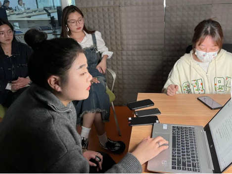 本次选拔采用录制视频和老师点评的方式进行。在浙江乌龙企业导师陈佳妮向大家介绍了跨境直播岗位能力要求后,准主播们开始认真准备并熟悉直播脚本。