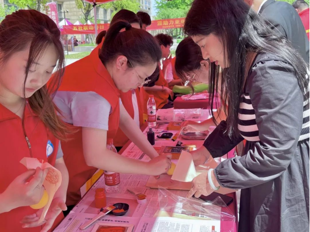 小朋友们遇到不懂的地方,志愿者们耐心陪伴在他们的身侧,和家长们一起提供帮助,经过大家一下午的共同努力,完成了书签定制、文字印刷、书法描绘……现场一片欢声笑语。让小朋友们在体验中感悟中华文字之美,焕发传统文化新的活力。