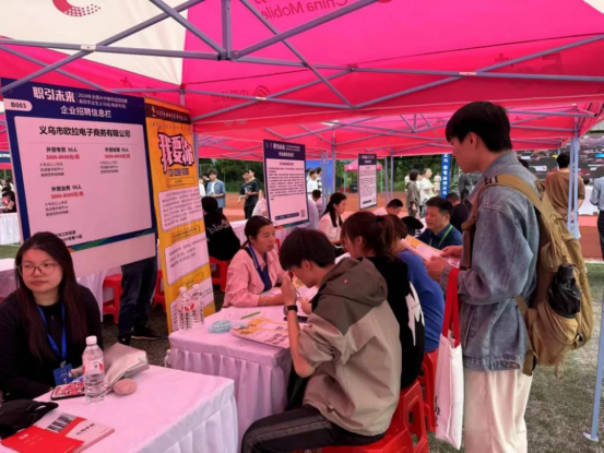 在义乌工商职业技术学院的湖畔操场,商贸流通学院的师生们感受到了浓厚的招聘氛围。现场,890余家企业齐聚一堂,为参会学生提供了超过1.5万个就业岗位。这些企业涵盖了电商行业的各个领域,包括跨境电商、供应链管理、物流配送等,为商贸流通学院的学子们提供了丰富的职业选择。