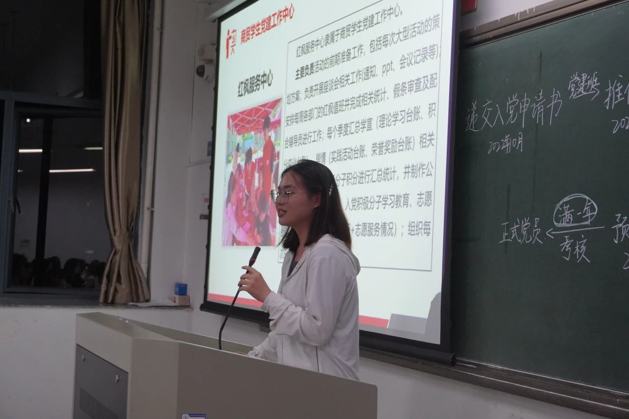 党建引领启新程,学子践行铸忠魂。在最后的环节中,学生党员全面介绍学院学生党建工作服务中心,通过视频生动展示其发展历程及丰富多彩的党建活动。