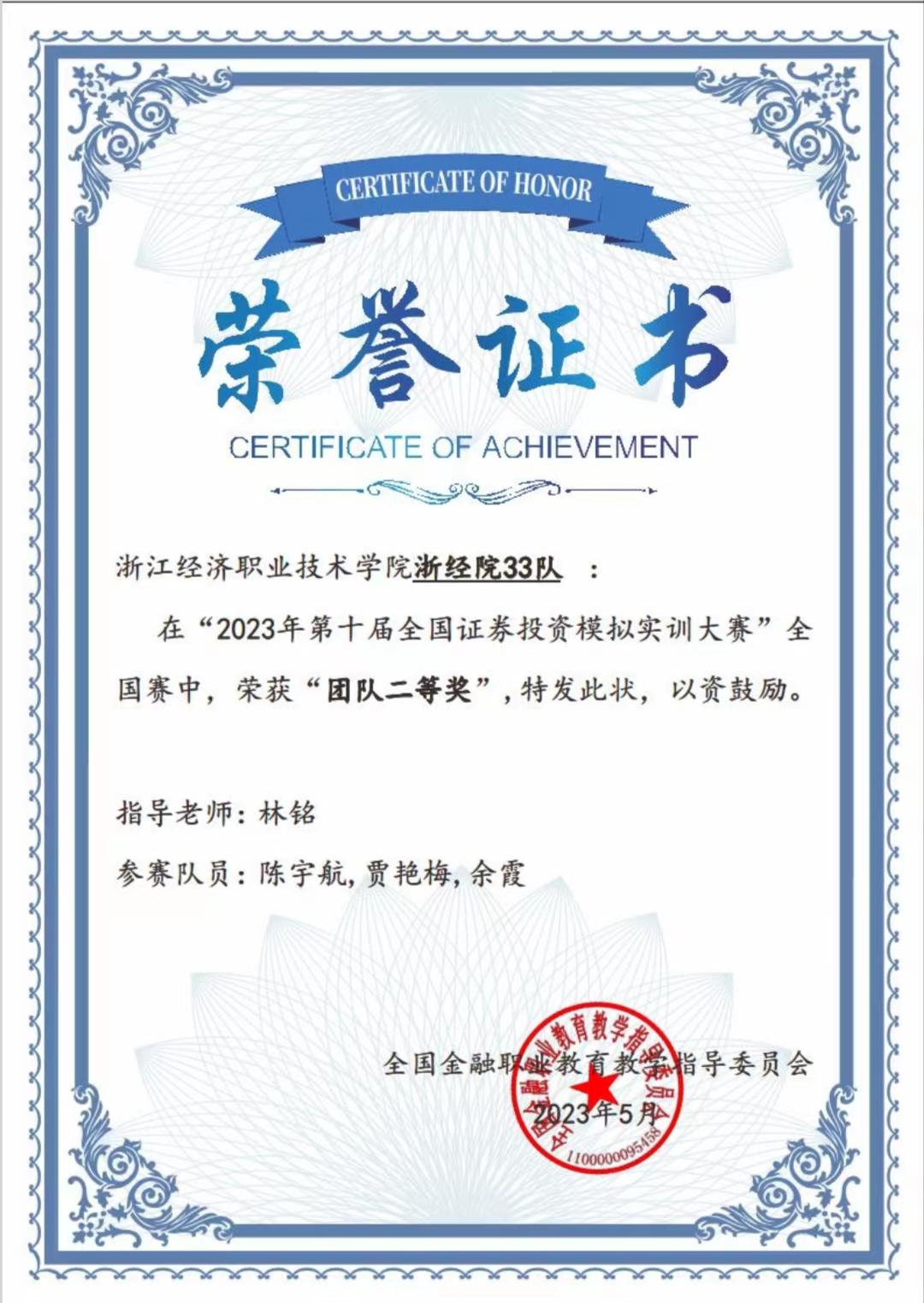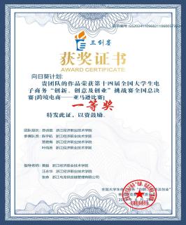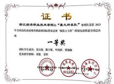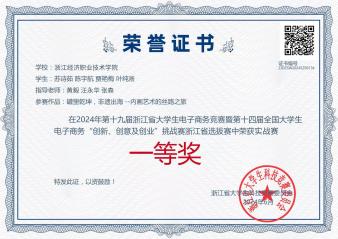 荣誉的殿堂里,她的名字熠熠生辉。从2024年第十九届浙江省大学生电子商务竞赛的实战赛一等奖,到2023年全国高校商业精英挑战赛的跨境电商赛道全国总决赛桂冠,再到浙江省“挑战杯”的银奖、全国证券投资模拟实训大赛的二等奖……三十余项奖项,是她智慧与汗水的结晶,是她不懈追求的见证。除此之外她还获得过2022-2023学年省政府奖学金、2023-2023学年学业特别奖学金、2023-2023学年学业三等奖学金,每一项荣誉,都如同星辰落入心海,照亮了她前行的道路。
