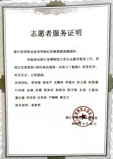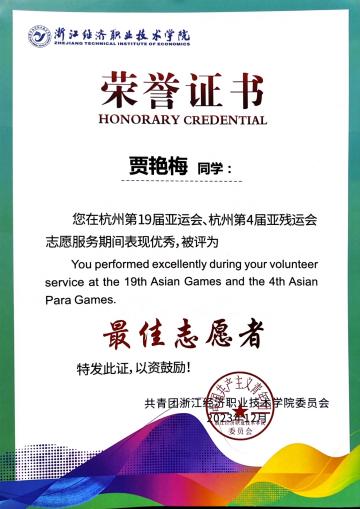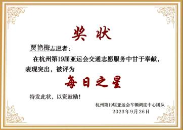 在爱与奉献的田野上,她以行动诠释着青春的意义。无论是杭州亚运会的盛大舞台,还是社区的细微角落,都有她温暖的身影。在亚运志愿服务中,她以卓越的表现荣获“最佳志愿者”及“每日之星”称号,五十余次的志愿服务,上千人的受益,是她心中最美的风景。每一次伸手相助,都是她心灵最美的绽放。