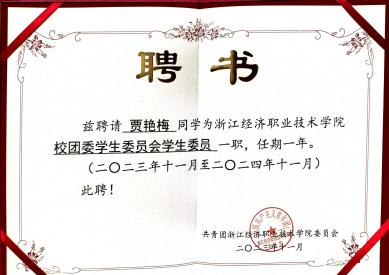在校园这片沃土上,她是校团委学生会的学生委员,是实训中心助理负责人,也是素拓部的活跃分子。她以勤奋为笔,以认真为墨,书写着属于自己的青春篇章。在她的带领下,部门成员携手并进,共创佳绩,赢得了师生的一致好评。三好学生、优秀班主任助理、勤工助学之星……这些荣誉,是她对校园生活的热爱与投入的最好证明。而她所带领的宿舍,更是荣获“五星级寝室”、“文明寝室”称号,彰显了团队的力量与温馨。尤为值得一提的是,她还主演了红色情景剧,站上了包括浙江大学在内的各大高校的舞台上,为各位青年学子开启了“学思政”的启蒙之旅,用艺术的力量传递着正能量。