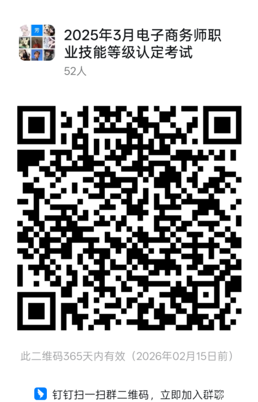 5.报名成功之后,可扫码加入“2025年3月电子商务师职业技能等级认定考试”钉钉群。