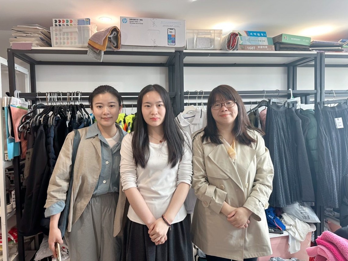 在杭州,潘飞霞、鲍怡恬两位老师前往杭州市拱墅区中国铁建国际大厦看望实习学生肖亚莉。该学生所在的杭州洁翔供应链管理有限公司,是汇孚集团旗下的外贸部门。作为外贸服装业务助理,肖亚莉同学的日常工作丰富且充实。制作面料卡时,她需要熟知各类面料特性,精准标注成分、质地等信息;翻译客户资料款图,面对大量专业词汇,她依靠查阅资料确保准确传达;核实服装尺寸,更是一丝不苟,以免影响订单交付。在辅助做单证过程中,肖亚莉感慨道:“做单证的内容其实与学校所学的差不多,实操让我真正理解了这些知识,非常有用。” 此外,她还常随老板出入面料市场,接触新面料工艺,拓宽行业视野,同时熟练掌握 DHL、FEDEX 等国际快递寄送流程,为服装出口物流提供保障。