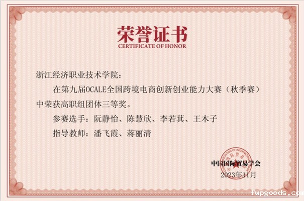 第九届OCALE全国跨境电商创新创业能力大赛(秋季赛)高职组团体三等奖。