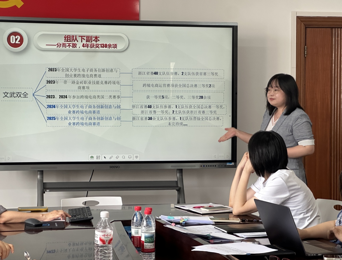 最后,汪院长为整个活动做了收尾,他认为跨境电商团队虽成立时间短但成长速度快,其专业建设方法值得大家学习;他同时强调各专业教研室应重视技能赛的突破,团队协作需要具备奉献精神,最终达到让所有学生全面成长的目标。