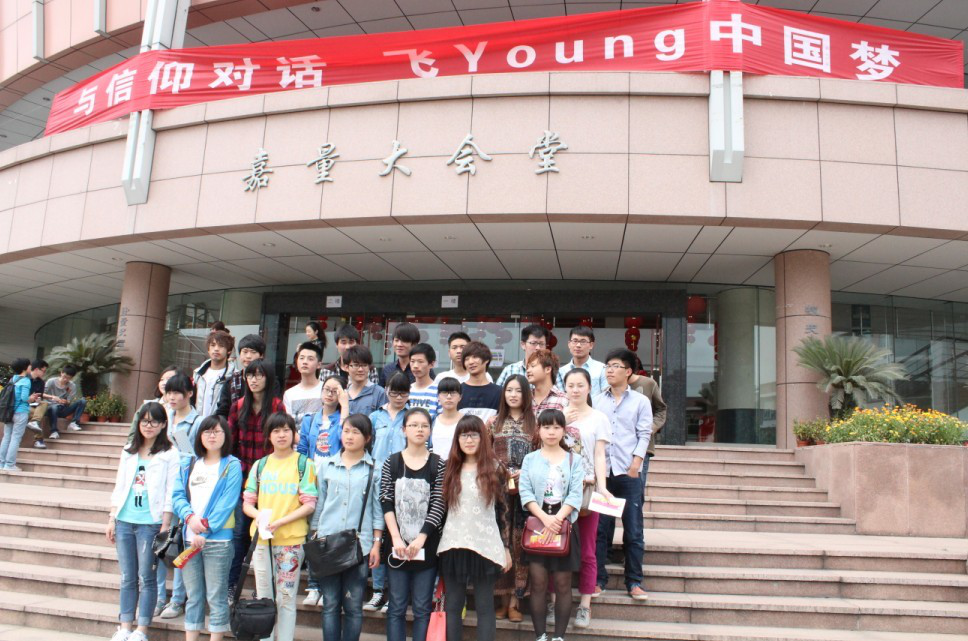 一场精彩的报告会在阵阵掌声中圆满的结束了,我校学生还在中国计量学院嘉量大会堂门口留影纪念。
