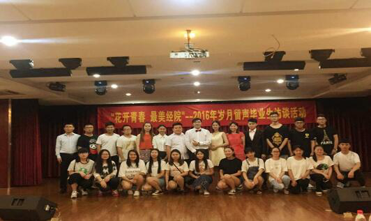 5月31日,由学工部、学生处、团委主办,各二级学院协办的2016年学生科技文化活动月之“花开青春、最美经院——岁月留声”毕业访谈节目在信息科技楼二楼学生活动中心举行。学工部、学生处副处长易际培,团委书记王芳芳,学工部、团委以及各二级学院的老师和300余名学生代表参加了访谈。
