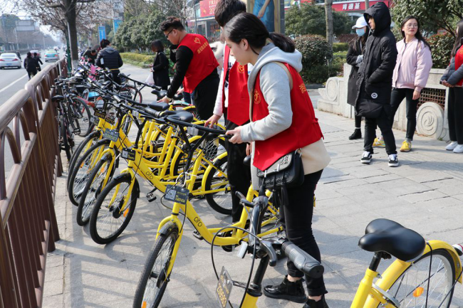 校团委副书记赵丽媛同学表示:“共享单车乱停放,阻碍交通,影响市容市貌,是一种不文明的行为。当前做到规范停车、合理使用,仅靠运维员的力量是不够的。希望通过我校志愿者整理共享单车的行动来唤醒大家的文明意识,更多人在享受共享单车的便利时,也能做到文明出行,我们的城市家园一定能更加的美丽和谐”。