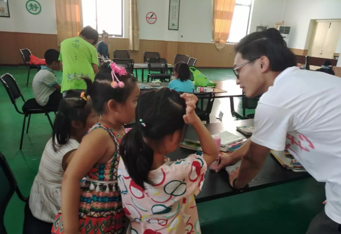 暖心小队成员积极参与并组织培训期间的学生签到,并帮忙烧水、搬桌椅、维持秩序、协调沟通等,主动陪伴没有参加排练的小朋友们看书、写字、画画,在与孩子们交流和接触的过程中,耐心解答他们的疑惑,仔细聆听他们的心声。