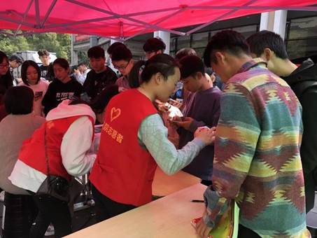 2018年10月23日我校学生在玉屏洲生活区食堂门口参与了献血活动。